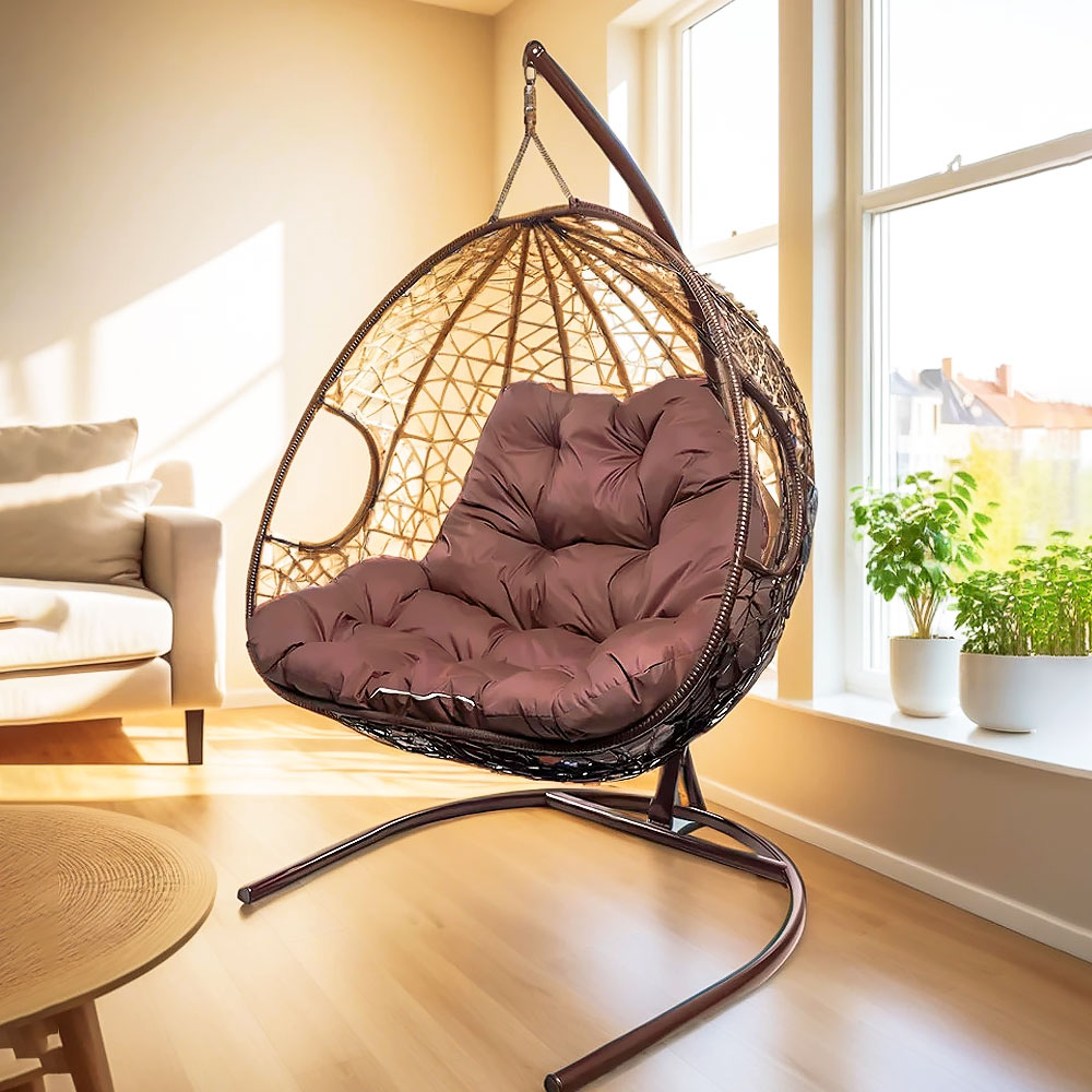 Кресло подвесное Кокон "Для двоих" ротанг коричневый, подушка цвет в ассортименте, 120*125*190см