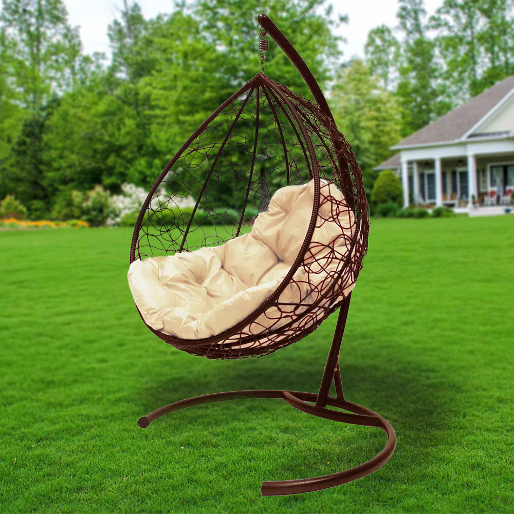 Кресло подвесное Кокон Капля ротанг коричневый, подушка цвет в ассортименте