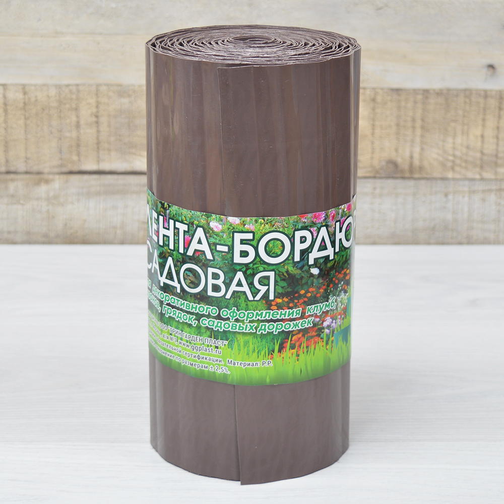 Лента бордюрная 25см*9м гофрированная, серо-коричневаяБордюрная лента имеет большое количество применений: для оформления клумб, цветников и альпийских горок; формирования бортиков грядок; оформление приствольных кругов деревьев; ограждение корневой системы кустов от разрастания; формирования насыпных дорожек; разделение сортов культурных растений и др.Лента выполнена из полипропилена, не подвергается коррозии и гниению, не выделяет в почву вредных веществ.Заключаем договора по 44 ФЗ, 223 ФЗ