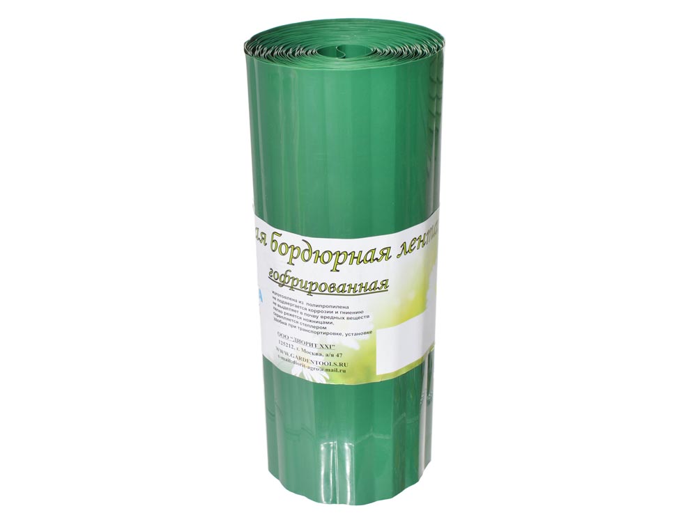 Лента бордюрная 30см*9м гофрированная зеленаяБордюрная лента имеет большое количество применений: для оформления клумб, цветников и альпийских горок; формирования бортиков грядок; оформление приствольных кругов деревьев; ограждение корневой системы кустов от разрастания; формирования насыпных дорожек; разделение сортов культурных растений и др. Лента выполнена из полипропилена, не подвергается коррозии и гниению, не выделяет в почву вредных веществ. Лента легко разрезается ножницами и скрепляется степлером. Ширина ленты - 30 см, длина - 9м.Заключаем договора по 44 ФЗ, 223 ФЗ