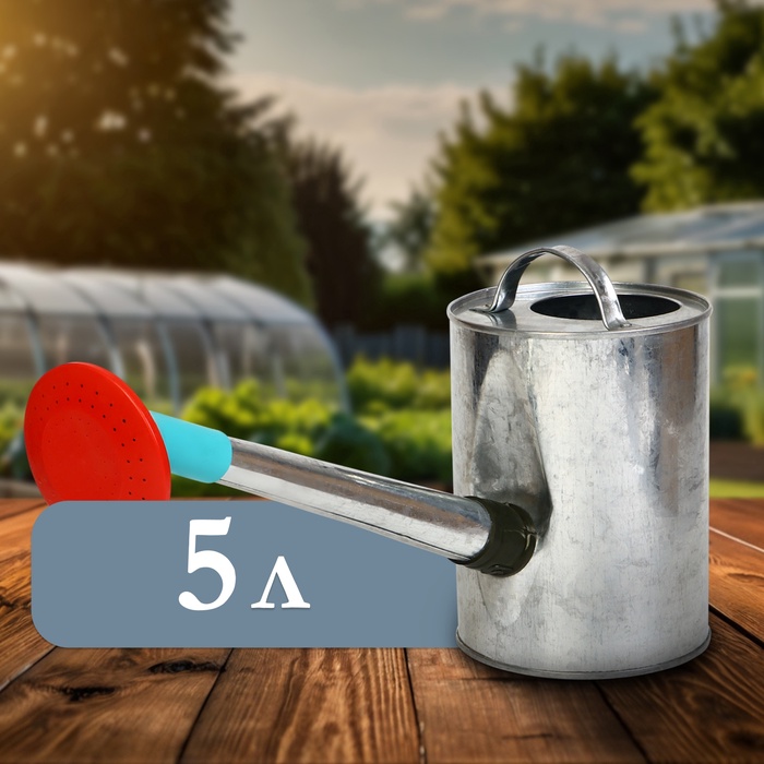 Лейка с длинным носиком, 5 л, с рассеивателем, оцинкованная, без рисунка, носик d=25 мм