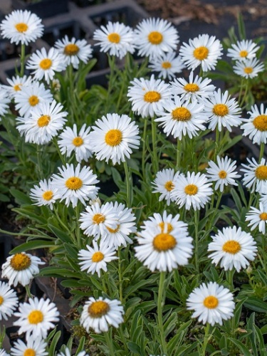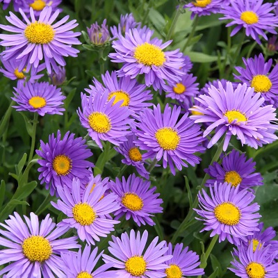 Цветы тёмно-фиолетовые с жёлтым центром.