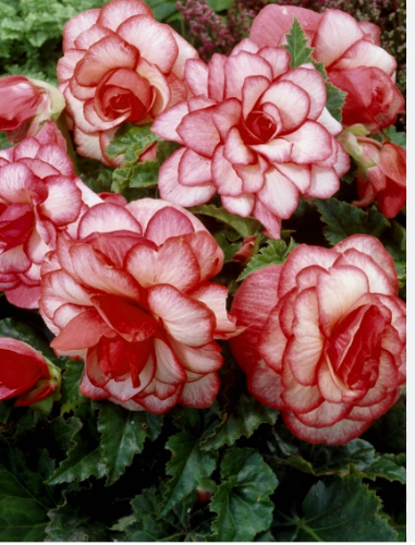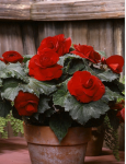 Бегония Ампельная Абрикосовая — клубневое растение со свисающими побегами, длиной 30 см. Красивые зеленые заостренные листья с неровно зубчатыми краями, прекрасные махровые и полумахровые абрикосовой расцветки цветки, диаметром 6–8 см. Агротехника. Бегония хороша для озеленения помещений, лоджий, балконов и для клумб, цветников и рабаток. В районах с мягким климатом разводят в открытом грунте, в более холодных районах высаживают на балконах или в саду только на летний период. Бегонии предпочитают смесь листовой земли и верхового торфа или смесь глинисто-дерновой, листовой, торфяной, перегнойной почвы и песка. В марте-апреле клубни высаживать углублением вверх в ящики с влажным торфом и выдерживать при температуре +15...+18°С. При появлении ростков пересадить в отдельные горшки. В конце мая - начале июня можно высаживать на балкон или в открытый грунт. Бегония чувствительна к яркому солнечному свету. В жаркую, сухую погоду на солнце цветки и кончики листьев могут подвядать, но и при сильном затенении побеги вытягиваются, листья опадают, образуется мало цветков. Чем больше бегония получает рассеянного солнечного света, тем крупнее цветки и обильнее цветение (которое начинается в июне). Растение боится низких температур. В течение всего периода роста бегонию надо подкармливать минеральными удобрениями. Осенью, когда прекращается цветение, полив уменьшить, а при пожелтении листьев прекратить полностью. В октябре клубни выкопать, удалить корни и засохшие листья. Хранить в сухом торфе в непромерзающем помещении.