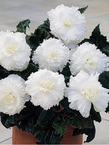 БЕГОНИЯ бахромчатая Красная (2шт) махровый - клубневое растение, высотой 20–30 см. Красивы ее зеленые сердцеобразные листья с неровно зубчатыми краями, прекрасны и махровые ярко красные цветки, похожие на гвоздику, диаметром 8–10 см. Агротехника. Бегония хороша для озеленения помещений, лоджий, балконов и для клумб, цветников и рабаток. В районах с мягким климатом разводят в открытом грунте, в более холодных районах высаживают на балконах или в саду только на летний период. Бегонии предпочитают смесь листовой земли и верхового торфа или смесь глинисто-дерновой, листовой, торфяной, перегнойной почвы и песка. В марте-апреле клубни высаживать углублением вверх в ящики с влажным торфом и выдерживать при температуре +15...+18°С. При появлении ростков пересадить в отдельные горшки. В конце мая - начале июня можно высаживать на балкон или в открытый грунт. Бегония чувствительна к яркому солнечному свету. В жаркую, сухую погоду на солнце цветки и кончики листьев могут подвядать, но и при сильном затенении побеги вытягиваются, листья опадают, образуется мало цветков. Чем больше бегония получает рассеянного солнечного света, тем крупнее цветки и обильнее цветение (которое начинается в июне). Растение боится низких температур. В течение всего периода роста бегонию надо подкармливать минеральными удобрениями. Осенью, когда прекращается цветение, полив уменьшить, а при пожелтении листьев прекратить полностью. В октябре клубни выкопать, удалить корни и засохшие листья. Хранить в сухом торфе в непромерзающем помещении.