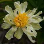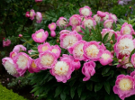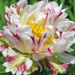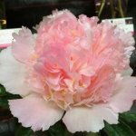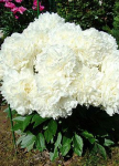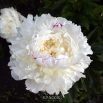 МАхровый. Белый. Большой, с небольшой чашевидной серединкой бледно-розового цвета, освещающей белые лепестки с зеленовато-желтым основанием. Может присутствовать несколько неразвитых белых тычинок. Мелкие плодолистики с розовыми кончиками. Стебли крепкие, хорошо держат цветок.