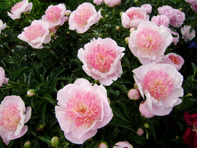 Японский. Цветок роскошный, внешние лепестки бледно-орхидейно-розовые, красиво контрастируют с внутренними узкими лепестками белых, розовых, красных и пурпурных оттенков. Куст прекрасной формы, высотой 80 см. Стебли тонкие, но сильные, с боковыми бутонами. Листья тёмно-зелёные. Классический цветок японского типа. Среднего срока цветения. Один из лучших пейзажных пионов. Золотая медаль американского общества пиона, 2004 г.