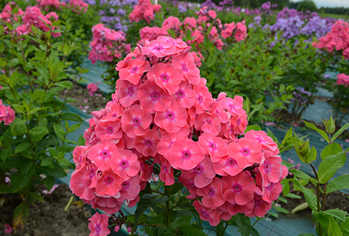 Цветки плотные, яркие лососево-розовые