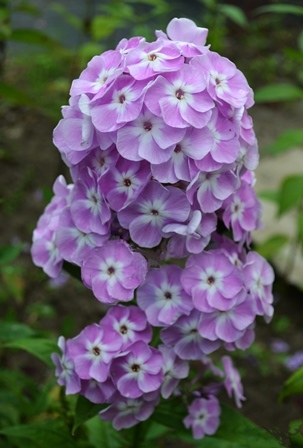 Цветок колесовидной формы, диаметром 3,7 см, светло-сиреневый с белым центром.
