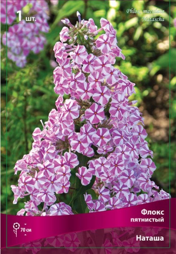 белый с сиренево-малиновой полосой по центру лепестка,соцветие довольно плотное,куст прочный,быстро разрастается