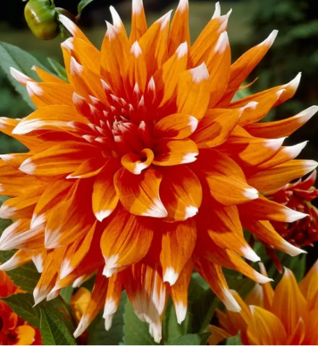 Кактусовидная. Высота 110 см. Цветок ярко-оранжевый с белыми кончиками до 15-20 см.