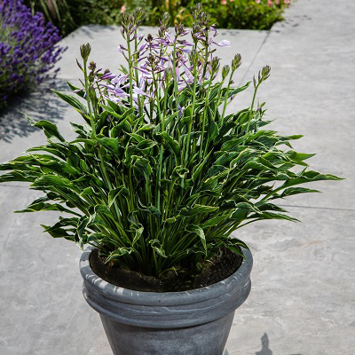 листья сильно закрученные, узкие, тёмно-зелёные с бело-кремовой окантовкой по краю листа. Черешки длинные, направлены строго вертикально.