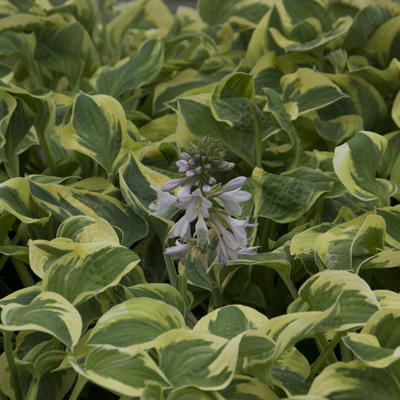 листья темно-зеленые с голубым оттенком с широкой неровной желто-кремовой каймой