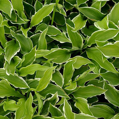 зеленые листья с белым центром, цветки пурпурные