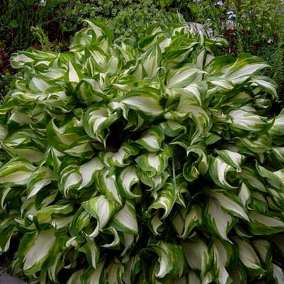 листья темно-зеленые с узкой белой полосой по центру