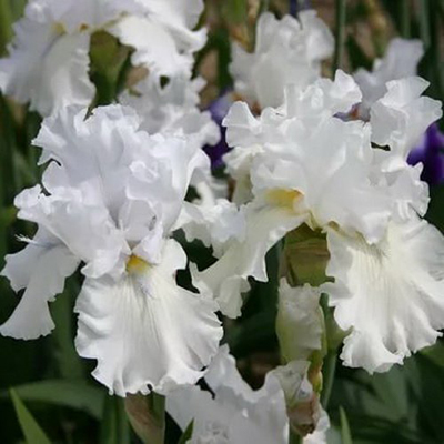 Нежно-белый с лимонно-желтой бородкой. Лепестки волнистые