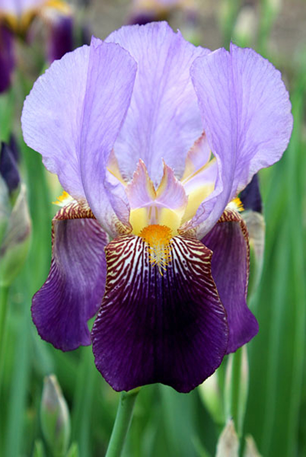 Прекрасный сорт для оформления любого сада. Цветки средних размеров 8-10 см в диаметре. В среднем размер куста до 60 см, но выглядит весьма компактным. Верхние лепестки нежно-лавандовые , а нижние темно-фиолетовые. Размер самих цветков в среднем не превышают 8-10 см диаметре. Одним из преимуществ этого растения является аромат и зимостойкость.