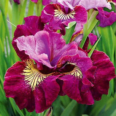 бархатистый, бордово-пурпухные с желтым сигналом нижние лепестки, верхине - сиренево-розовые