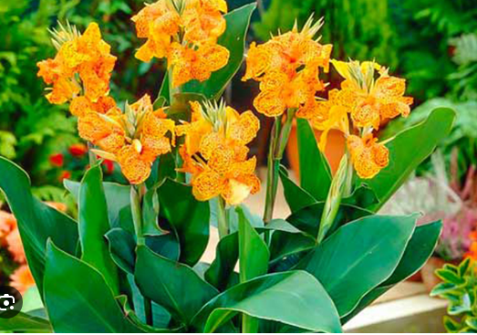 Высота 90см. Листья зеленые. Цветки желтые с красным крапом, диаметром 10-12см.