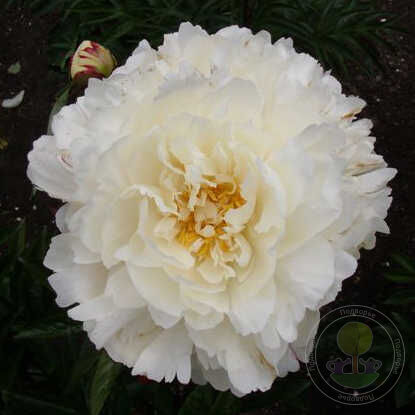 Махровый. Цветок белый. Несколько тычинок. Без пыльцы и семян. На отдельных цветках по краям лепестков бывают пятна розового цвета. Цветение очень обильное, в средне-поздние сроки. Стебли очень прочные. Куст мощный. Высота 85 см. Листва тёмно-зелёная.