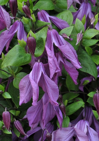 розово-фиолетовые колокольчики, хорошо выглядит как почвопокровник. Н 150-200см, Обрезка: III, 30см, Цветение: 7-9, Ø 6-8см