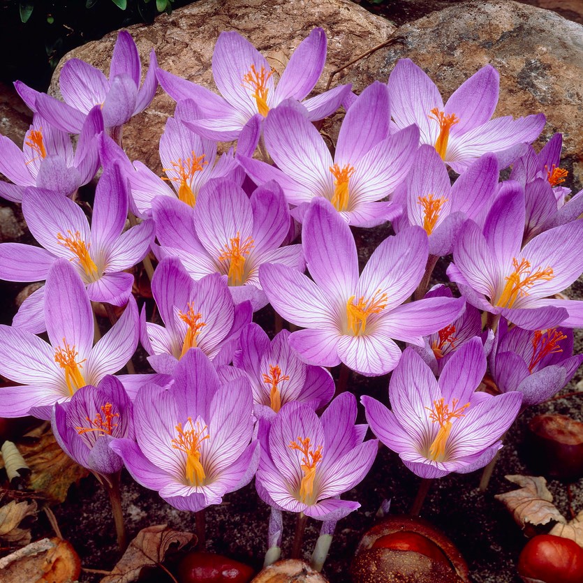 Крокус Конкерор - Цветок распускается осенью, в эту пору его насыщенный окрас наиболее притягателен и отлично контрастирует с пожелтевшей листвой. Крокус Conqueror не боится заморозков, обильно цветет и не нуждается в особом уходе. Этот цветок способен поднять настроение даже в самый пасмурный и холодный осенний день.
