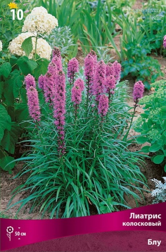 Лиатрис колосковый - травянистое клубнелуковичное растение высотой до 50 см. Цветки - мелкие корзиночки, собраны в колосовидное соцветие до 35 см длиной, разнообразной окраски. Цветет в июле-августе 35-40 дней.