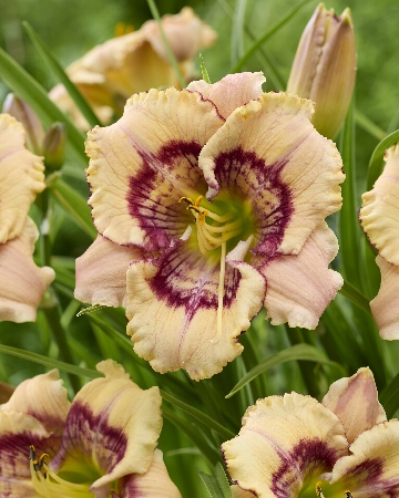 уникальный СПАЙДЕР-ТИП (группа UFO) необычная форма цветка ,кремово-желтый с пурпурным кольцом в виде паутины Н-85см, Ø 20см, цветение 6-7,8