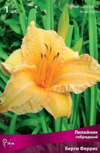 сиреневый с белой полосой по центру лепестка, зеленым горлом и желтой гофрированной каймой