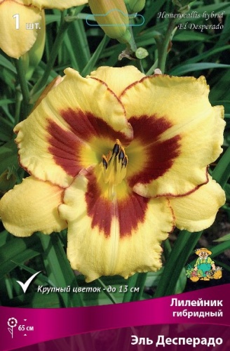 желтый с винно-пурпурным глазком и каймой, желтое горло