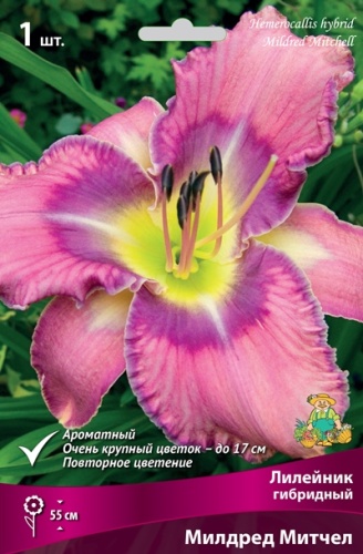 лавандовый с более темным глазком и каймой,крупный,ароматный,повторное цветение