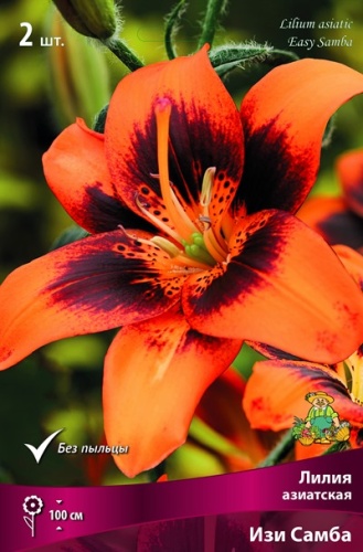 ярко-оранжевый с темно-бордовыми пятнами в центре и легкими мазками на кончиках, диаметр цветка 12 см, без пыльцы