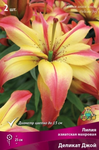нежно-желтый с розовыми кончика и редким крапом в центре, диаметр цветка 15 см