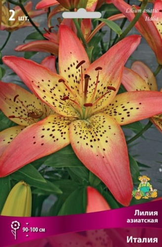 тигровая, цветок КРУПНЫЙ, кремово-желтый, красно-оранжевый крап и пыльники, диаметр цветка до 18 см