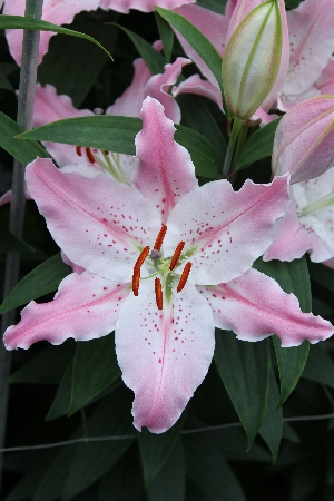 белый с темно-оранжевыми тычинками, очень крупные цветы, диам. до 30см, H-110см