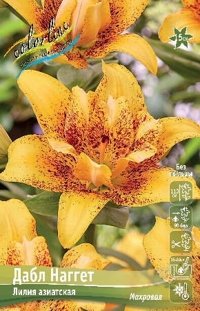 МАХРОВЫЙ (2 слоя) без пыльцы, медово-желтый с бордово-красным частым крапом в центре, диам 15см, H-110см