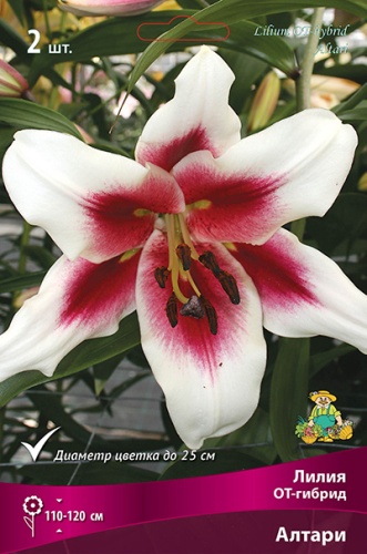 КРУПНЫЙ, бело-кремовый с ярко-малиновым центром до середины лепестков, диаметр цветка до 25 см