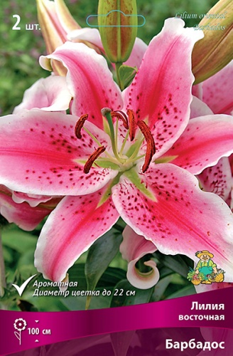 КРУПНЫЙ, белый, вдоль лепестков ярко-желтая полоса, ярко-оранжевые пыльники, диаметр цветка до 25 см