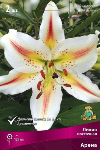 чисто-белый с зеленым центром, бутоны зеленоватые, диаметр цветка 20 см