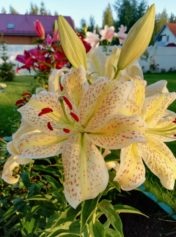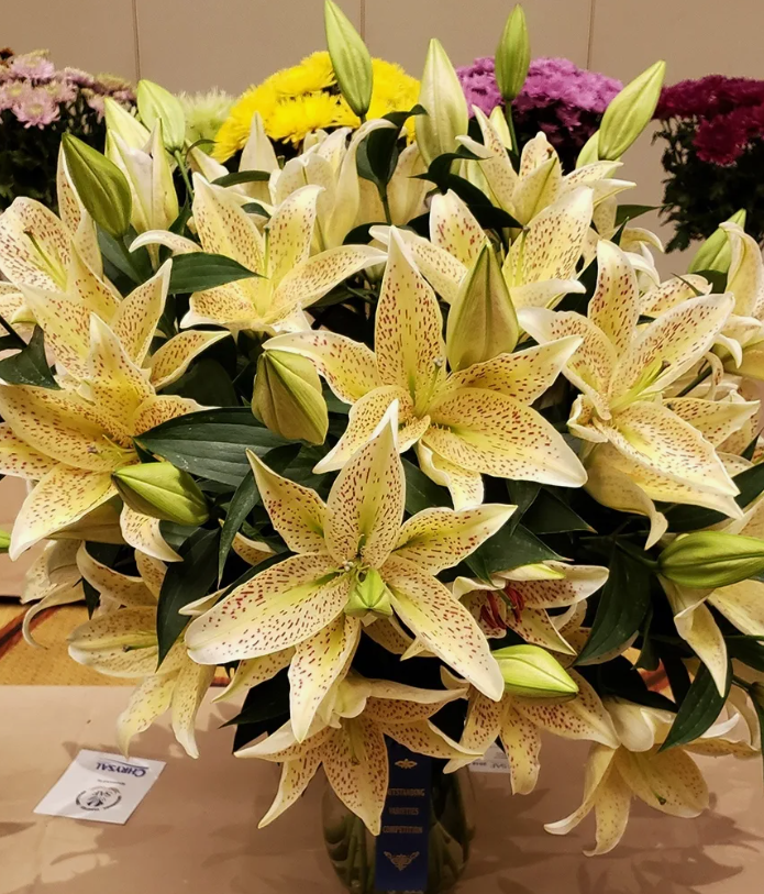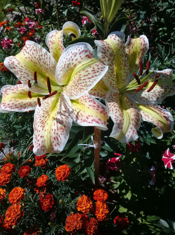 Яркий необычный сорт тигровой окраски! Лепестки белые с центральной салатовой жилкой и мелким пурпурным крапом.