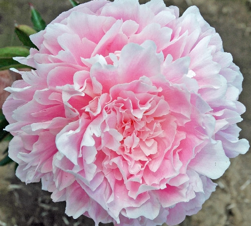Получено от Ника Френда-старшего несколько лет назад. Происхождение: найденный саженец на поле срезанных цветов, поэтому происхождение, даты первого цветения и размножения неизвестны. Выращивается и размножается с тех пор под садовым названием «Friend» и ранее имел некоторое распространение под этим названием. Период цветения от середины до конца сезона. Полностью МАХРОВЫЙ. Розовый. Размер цветка 6 дюймов (15 см). В среднем три цветка на стебле. Внешние лепестки округлые; внутренние лепестки меньше, несколько гофрированные. В среднем три плодолистика; тычинки отсутствуют; фертильность не исследована. Ароматный. Прямостоячий рост. Листва до 24 дюймов (61 см), цветущие стебли поднимают верхушки цветков до 30 дюймов (76 см).