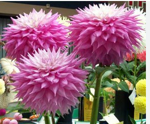 Декоративная. Высота 100-150 см. Цветки сиренево-лиловые с кремовой серединой, диаметром 20-25 см.