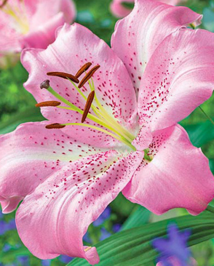 "Восточный гибрид. Высота 100см. Цветок нежно-сиреневый с легким бордовым крапом и палево-розовой серединкой, диаметром 18 см.