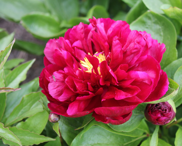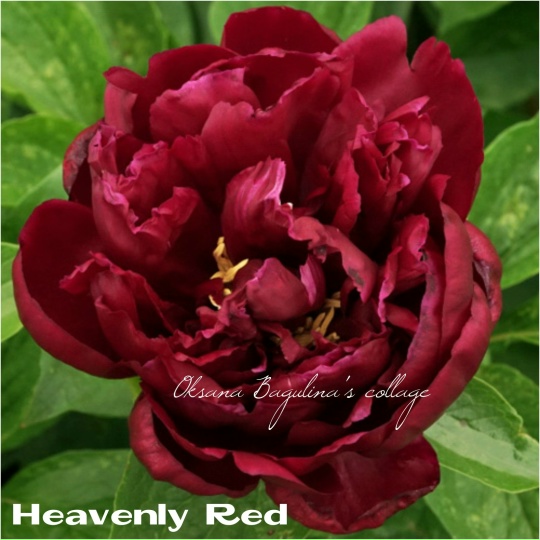 Пион Heavenly Red обладает махровыми пурпурно-красными цветками. Диаметр цветков достигает 18 см. Куст аккуратный, пышный. Листва темно-зеленая, гладкая, молодые листочки обладают красноватым оттенком. Стебли прямые и крепкие, цветы подходят для срезки.