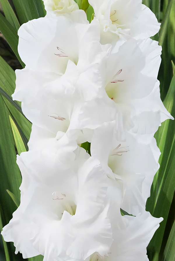 Великолепный сорт с высокими стеблями, украшенными белоснежными соцветиями. Высота растения 80-100 см. Каждый стебель украшен несколькими густыми соцветиями, изящно гофрированными по краям, что придает ему исключительную элегантность.