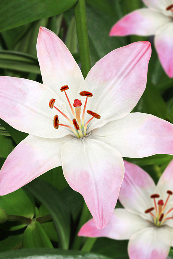 Нежный цветок белоснежного цвета. На кончиках лепестка можно увидеть напыления розовых оттенков. Такие напыления еще больше освежают цветок, добавляют ему романтичности, а так же глубины цвета.