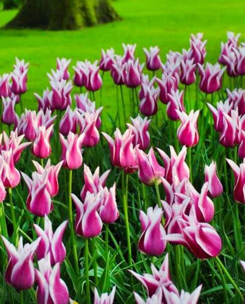 Тюльпан «Клаудия» начинает цвести в первые 10 дней мая. Эти солнцелюбивые красавцы никогда не раскрывают свои лепестки полностью. Цветки могут иметь разную окраску. Лепестки розово-малиновые с белой каймой. Диаметр цветка около 4 см.