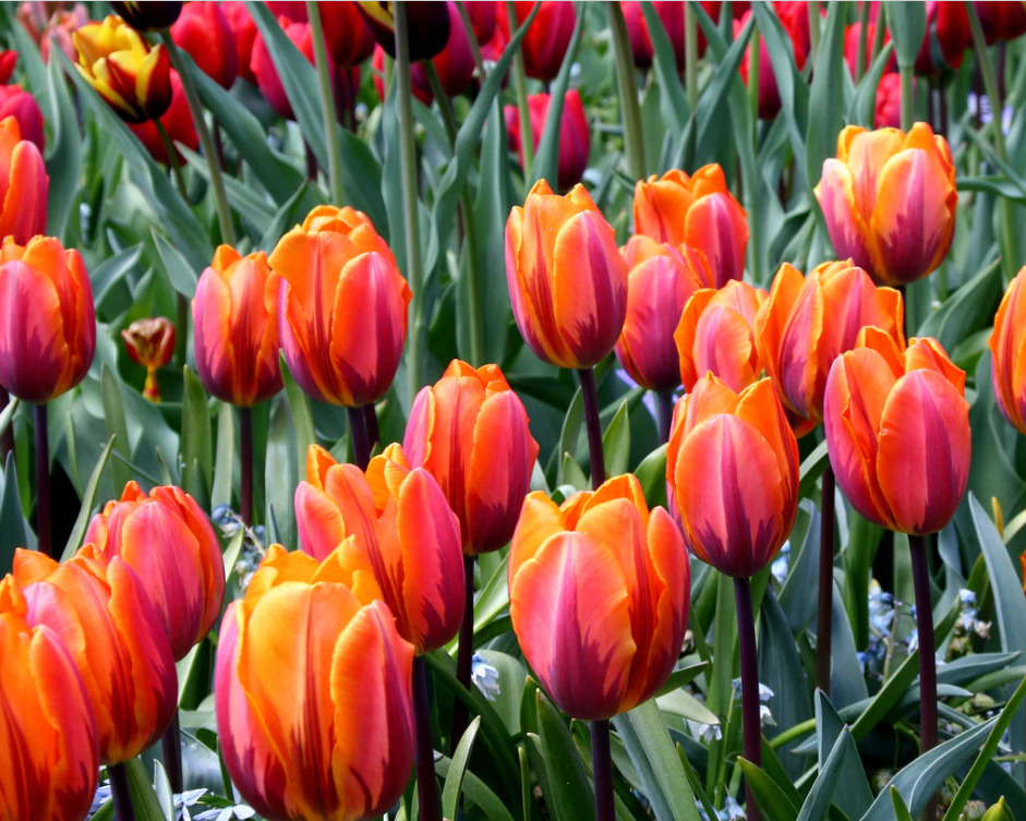 Тюльпан «Принцесс Ирен» - очень заметный сорт травянистых луковичных многолетников, который отличается неподражаемо эффектным цветением. Яркие бутоны объединяют в себе коралловый и оранжевый цвета. На лепестках также могут присутствовать бордовые блики. Цветы достаточно крупные и – их диаметр может составлять около 15 см. Цветение появляется во второй половине апреля и может длиться до середины мая.
