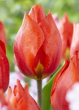 Относится к группе Простые ранние. Высота растения до 45 см. Форма цветка бокаловидная или овальная, не раскрывающиеся широко, размер цветка 7-10 см в высоту. Окрас ярко-алый с желтым донцем. Посадка конец сентября - октябрь. Глубина посадки зависит от размера луковицы и составляет в среднем 7- 8 см. Минимальное расстояние между луковицами должно вдвое превышать их диаметр. Период цветения - с середины мая. Почва - нейтральная или известково - кислая, хорошо дренированная, умеренно увлажненная. По освещённости предпочитают солнечные безветренные места или полутень. Сфера использования - в озеленении, некоторые сорта хорошо поддаются выгонке, а благодаря крепким цветоносам - хороши для срезки.