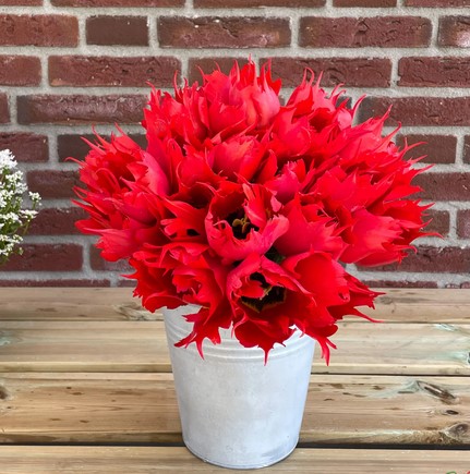 Этот тюльпан выделяется своей игривой индивидуальностью. Высоко заостренные удлиненные кончики бахромчатых лепестков поразительны и необычны, а в сочетании с его красивым насыщенным тоном цвета этот тюльпан обязательно привлечет внимание. Имея хорошую высоту до 55 см на длинных стеблях, тюльпан 'Robbedoes' будет отлично смотреться в цветочном бордюре, прекрасно сочетаясь с другими яркими оттенками для энергичного и приятного зрелища.