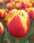 Тюльпан «Вашингтон» - запоминающийся сорт многолетних луковичных растений. Цветет очень яркими бутонами, лепестки которых удачно объединяют желтый и красный оттенки. Такой садовый красавец позволяет использование в различных садовых композициях. Он полыхает на клумбах в окружении других многолетников, и при этом великолепен в праздничных букетах.